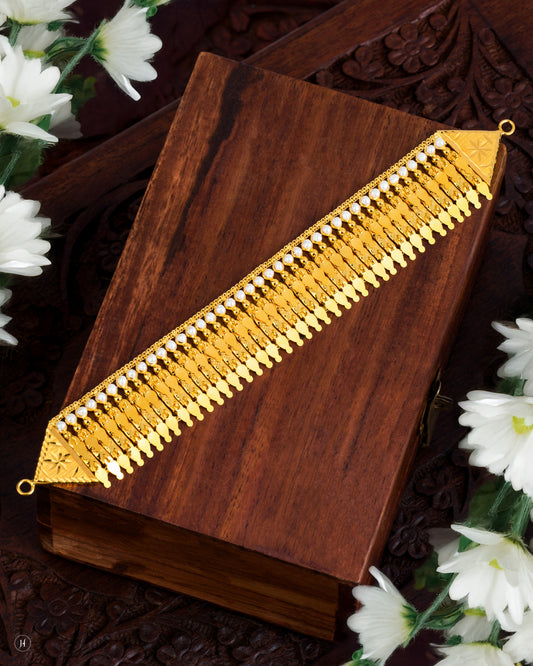 21Karat Yellow Gold Bahraini Wide Open Bangle with Pearls