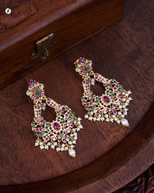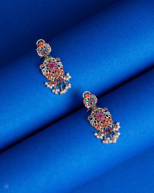 21K Yellow Gold Pakistani Ruby Emerald Floral Chandelier Necklace Set