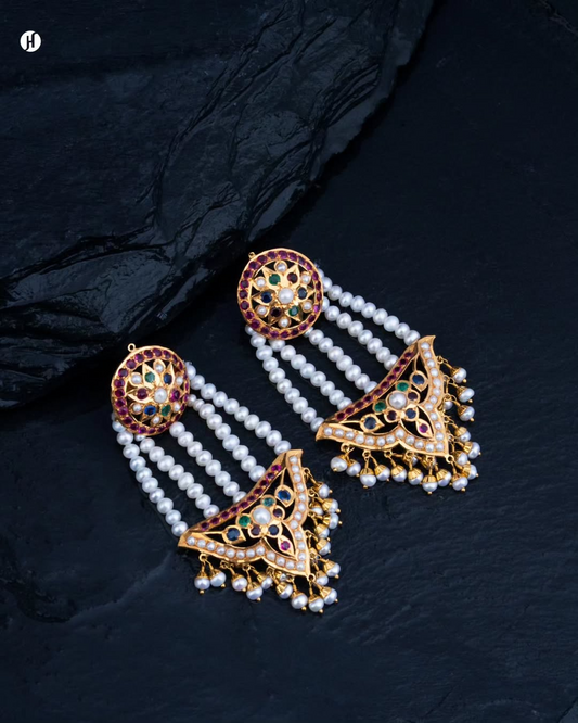 21K Gold Pakistani Multi-Strand Pearl Gemstone Necklace Set