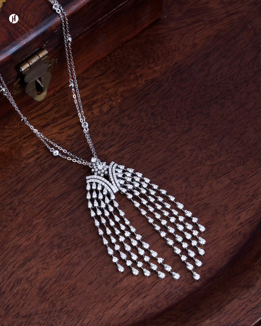 18K Yellow Gold Italian Moissanite Fan Tassel Necklace Set