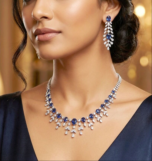 18K White Gold Diamond Leaf-drop Princess Necklace Set