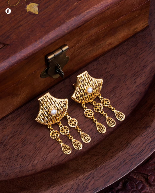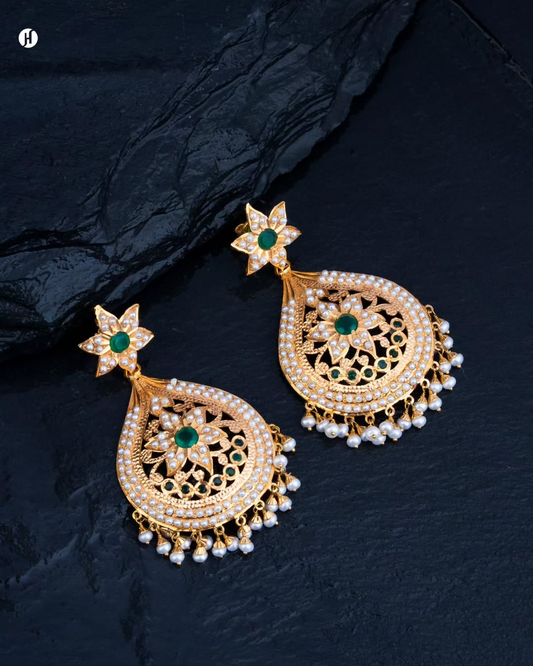 21K Yellow Gold Pakistani Majestic Floral Pearl Necklace Set