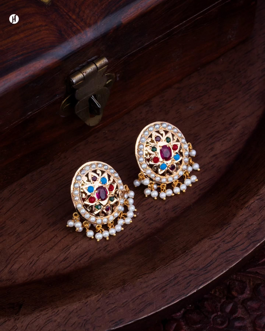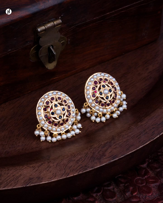 21K Yellow Gold Pakistani Multicolor Circular Motif Pendant Necklace Set