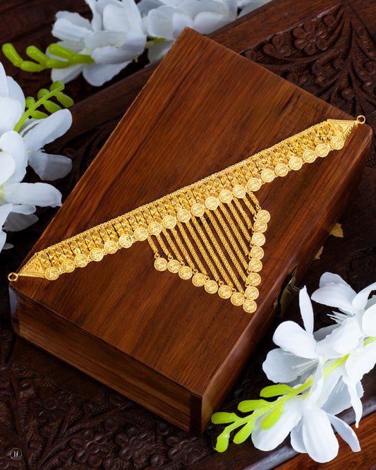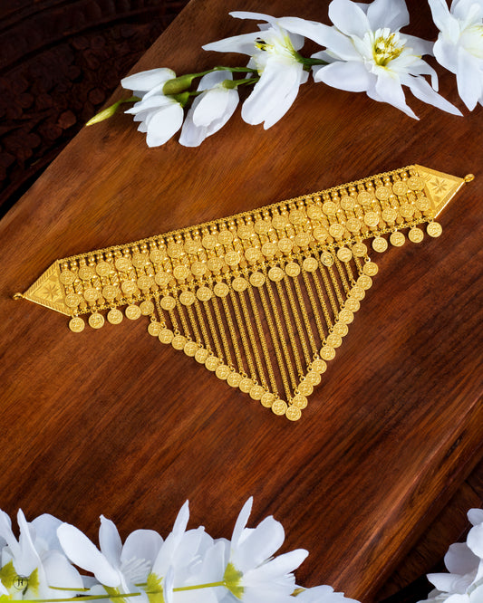 21K Yellow Gold Bahraini Coin Dangling V Chain Drops Choker Set