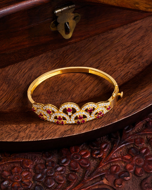 21Karat Yellow Gold Pakistani Ruby Floral Gemstone Bangle