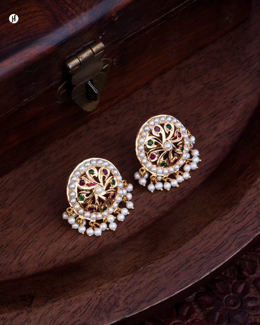 21K Yellow Gold Pakistani Multi-Gemstone Circular Motif Pendant Necklace Set