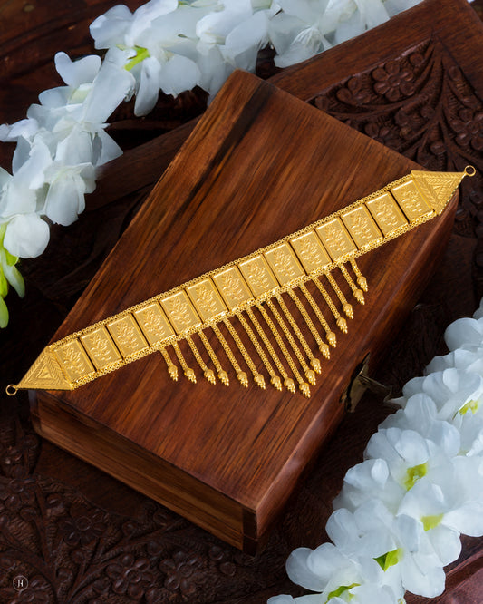 21K Yellow Gold Bahraini Rectangular Dangling Chain Drops Choker Set