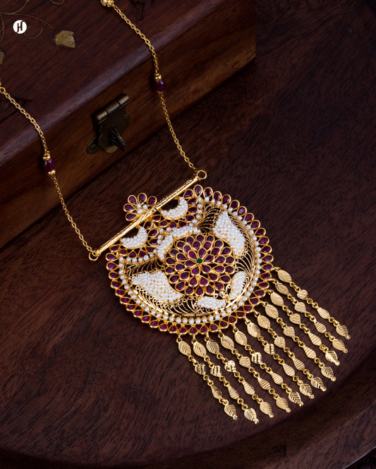 21K Yellow Gold Pakistani Royal-Floral Gemstone Necklace Set