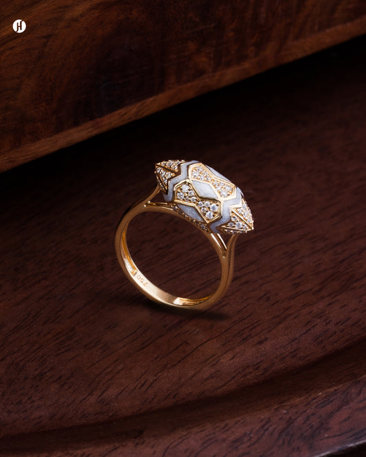 21K Yellow Gold Bahraini Enamel Milgrain Ring