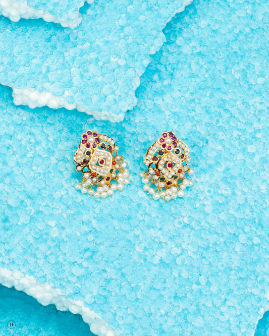 22K Yellow Gold Pakistani Ruby Emerald Pearl Heritage Necklace Set