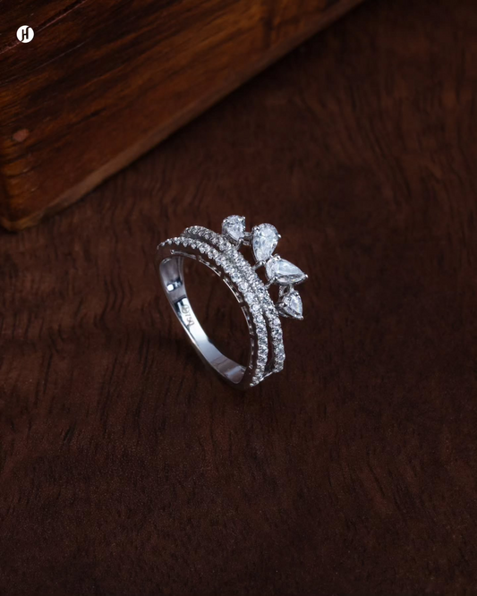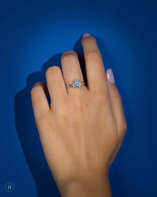 18K White Gold Lab Grown Diamond Triangle Round Statement Ring