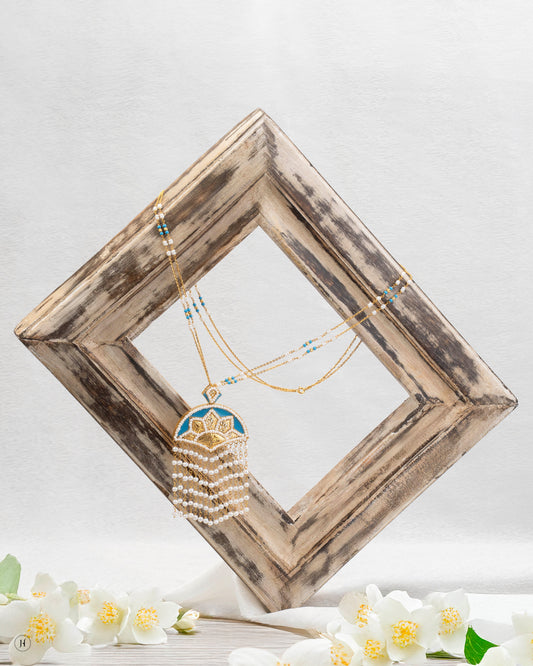 21Karat Yellow Gold Bahraini Pearl Tassel Choker Set