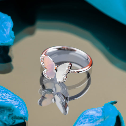 18K White Gold Mother of Pearl Butterfly Diamond Ring