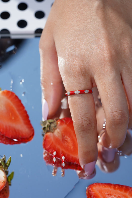 18K Rose Gold Red Enamel Diamond Earrings Ring Set