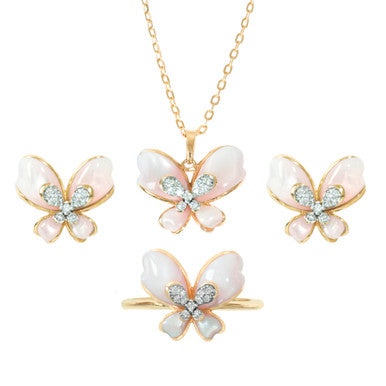 18K Rose Gold Butterfly Mother of Pearl Diamond Pendant Set