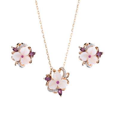 18K Rose Gold Pink Nectar Diamond Pendant Set