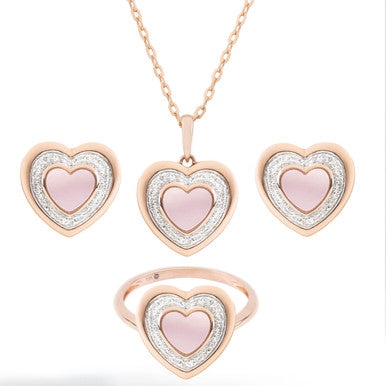 18K Rose Gold Heart Mother of Pearl Diamond Pendant Set