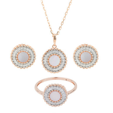 18K Rose Gold Mother of Pearl Diamond Pendant Set