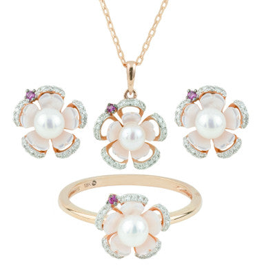 18K Rose Gold Pearl Nectar Diamond Pendant Set