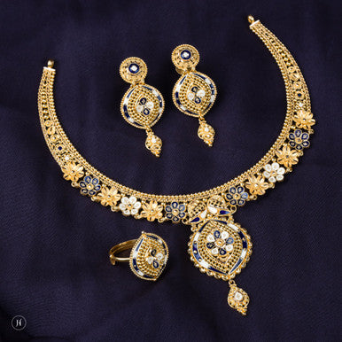 21K Yellow Gold Bahraini Blue Enamel Princess Necklace Set