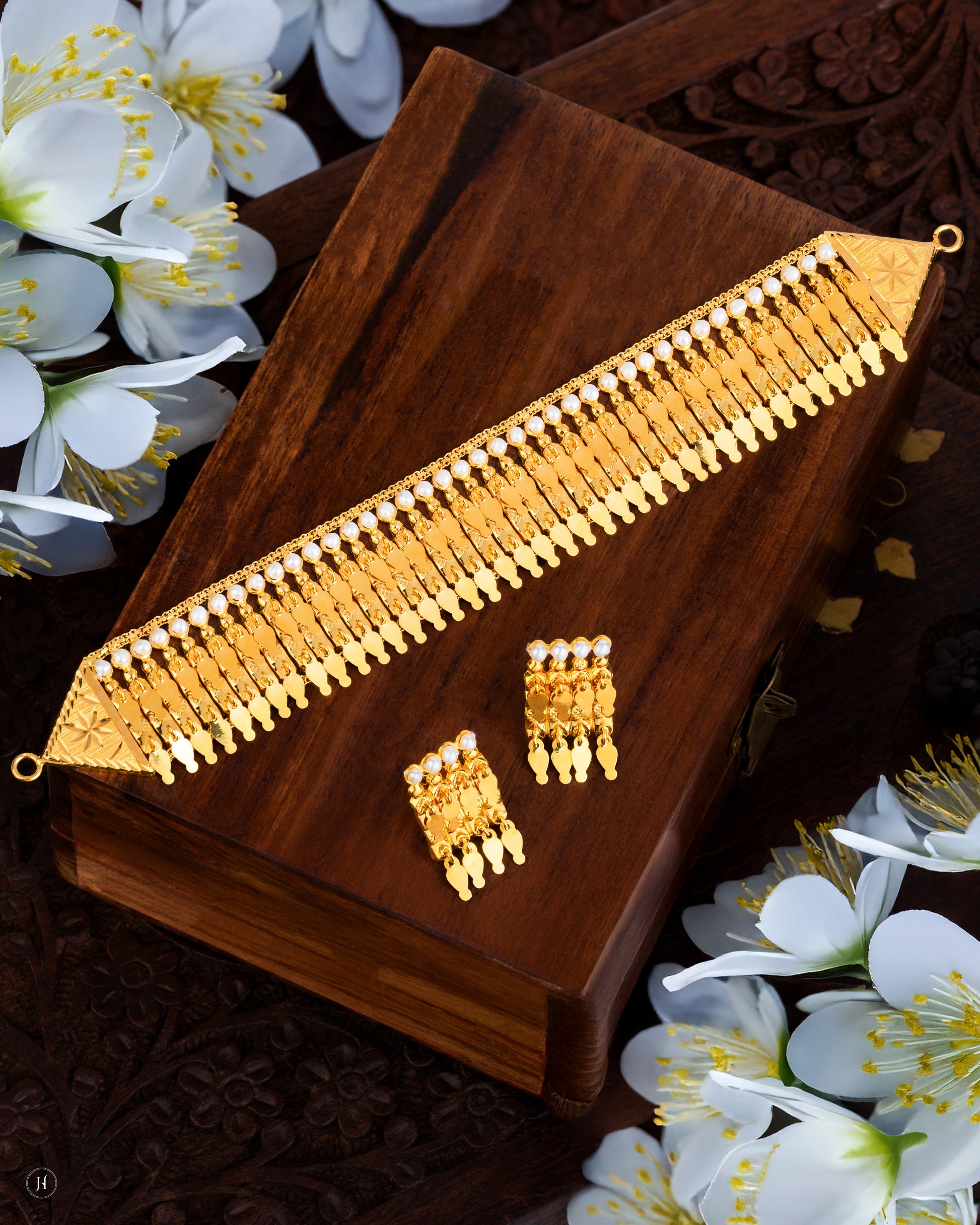 21K Yellow Gold Bahraini Dangling Drops Choker Set