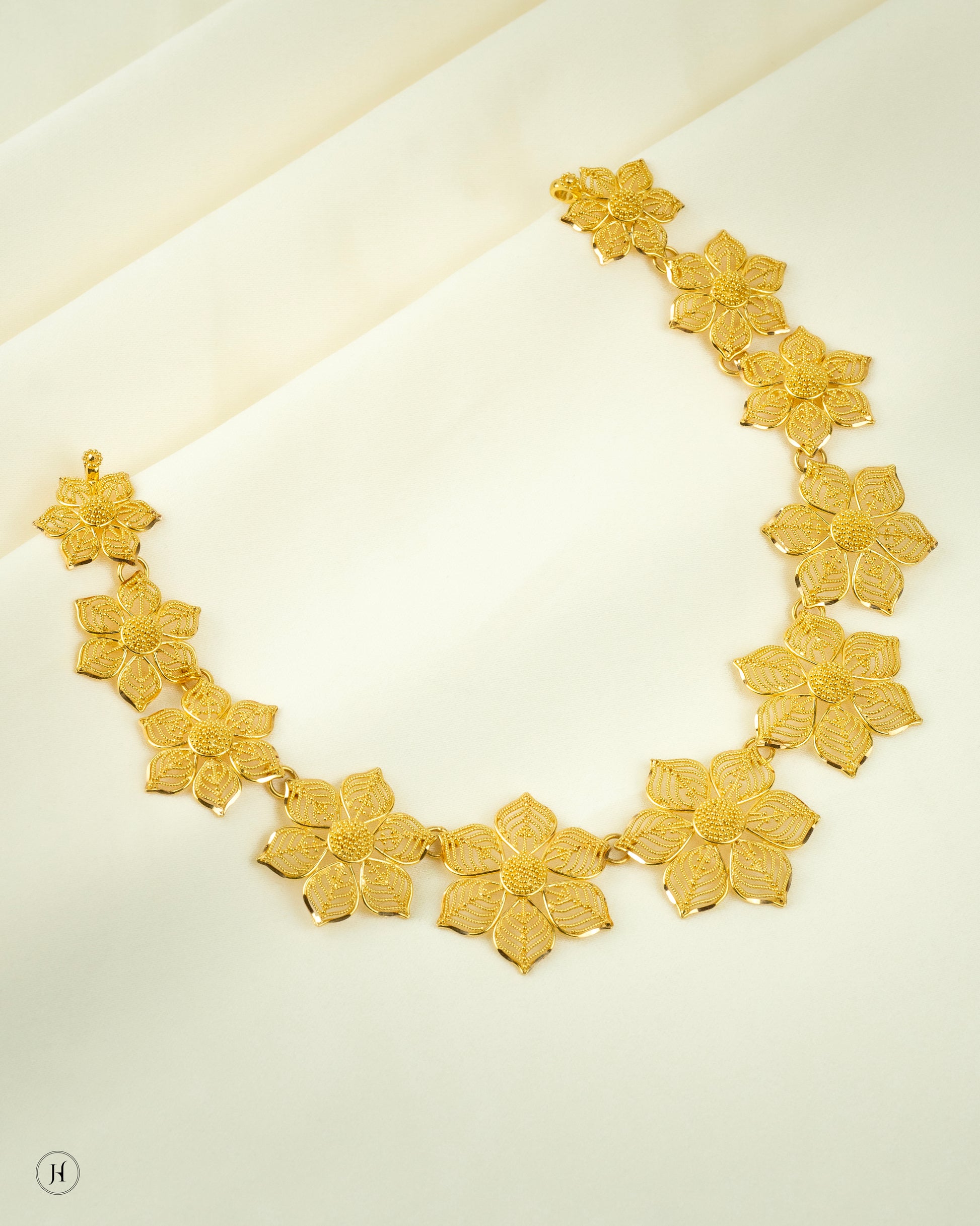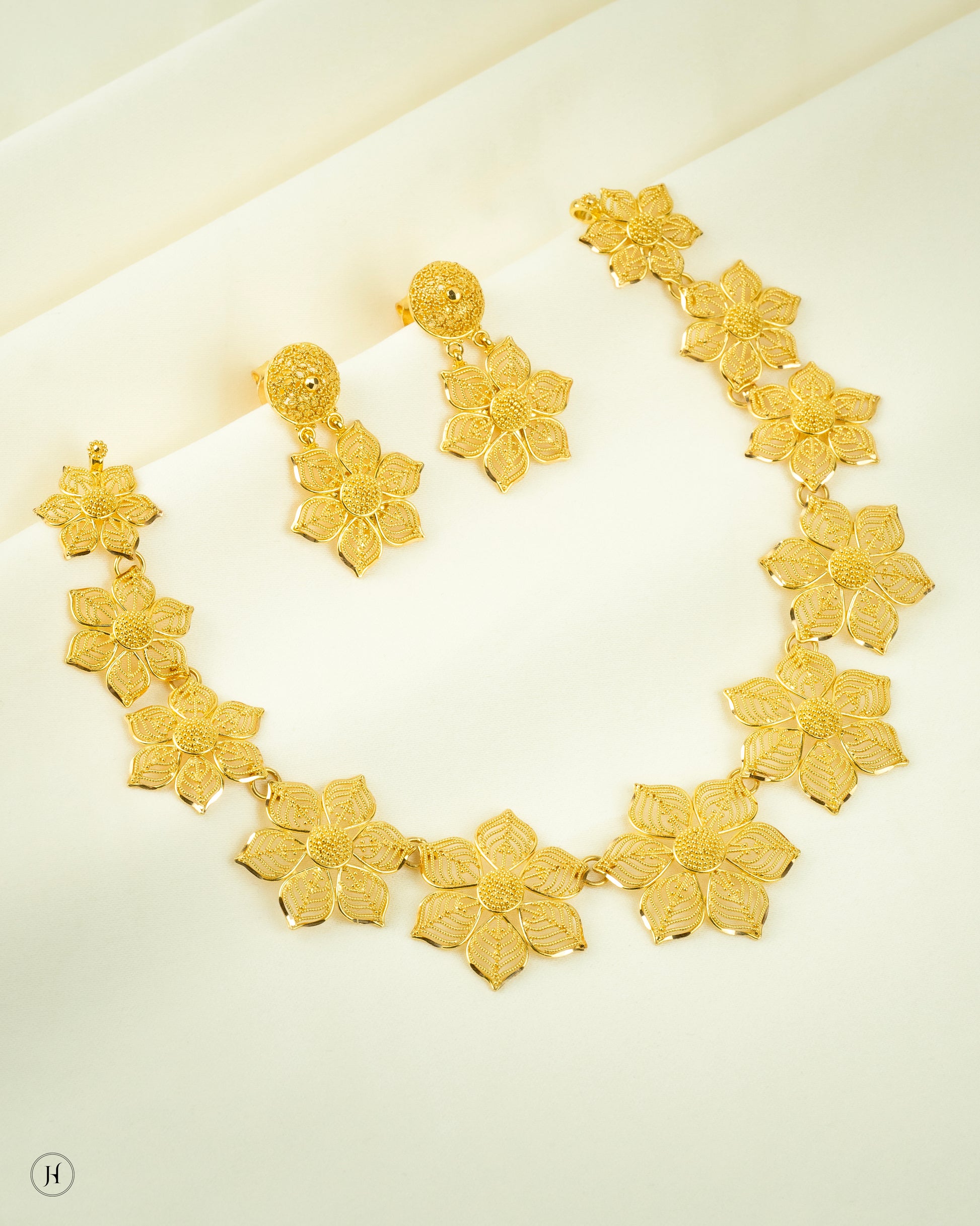 21K Yellow Gold Bahraini Flower Choker Necklace Set