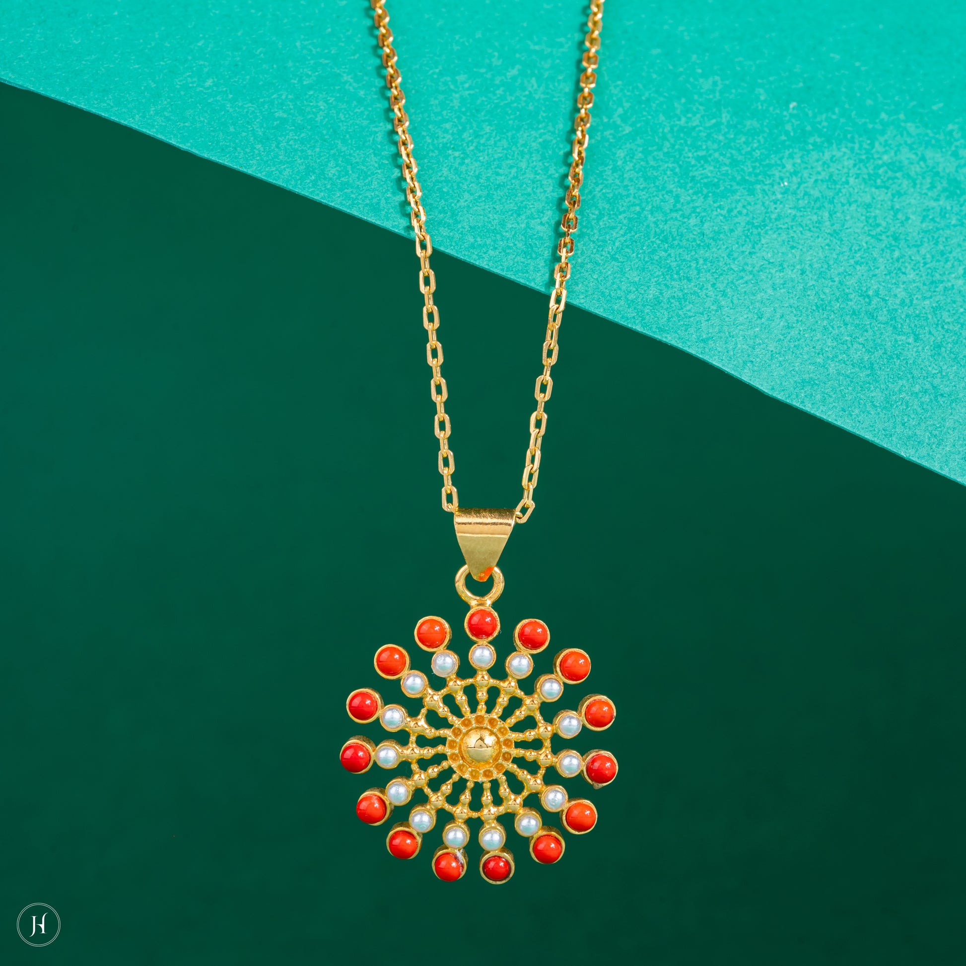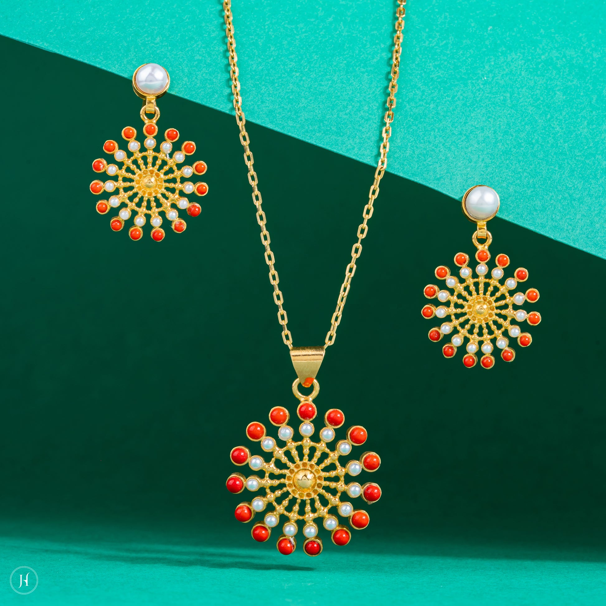21K Yellow Gold Bahraini Sun-Pearl Pendent Set
