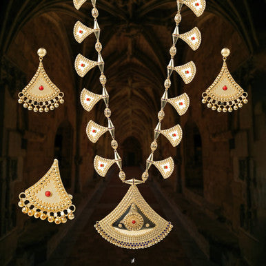 21K Yellow Gold Omani Coral Triangle Necklace Set