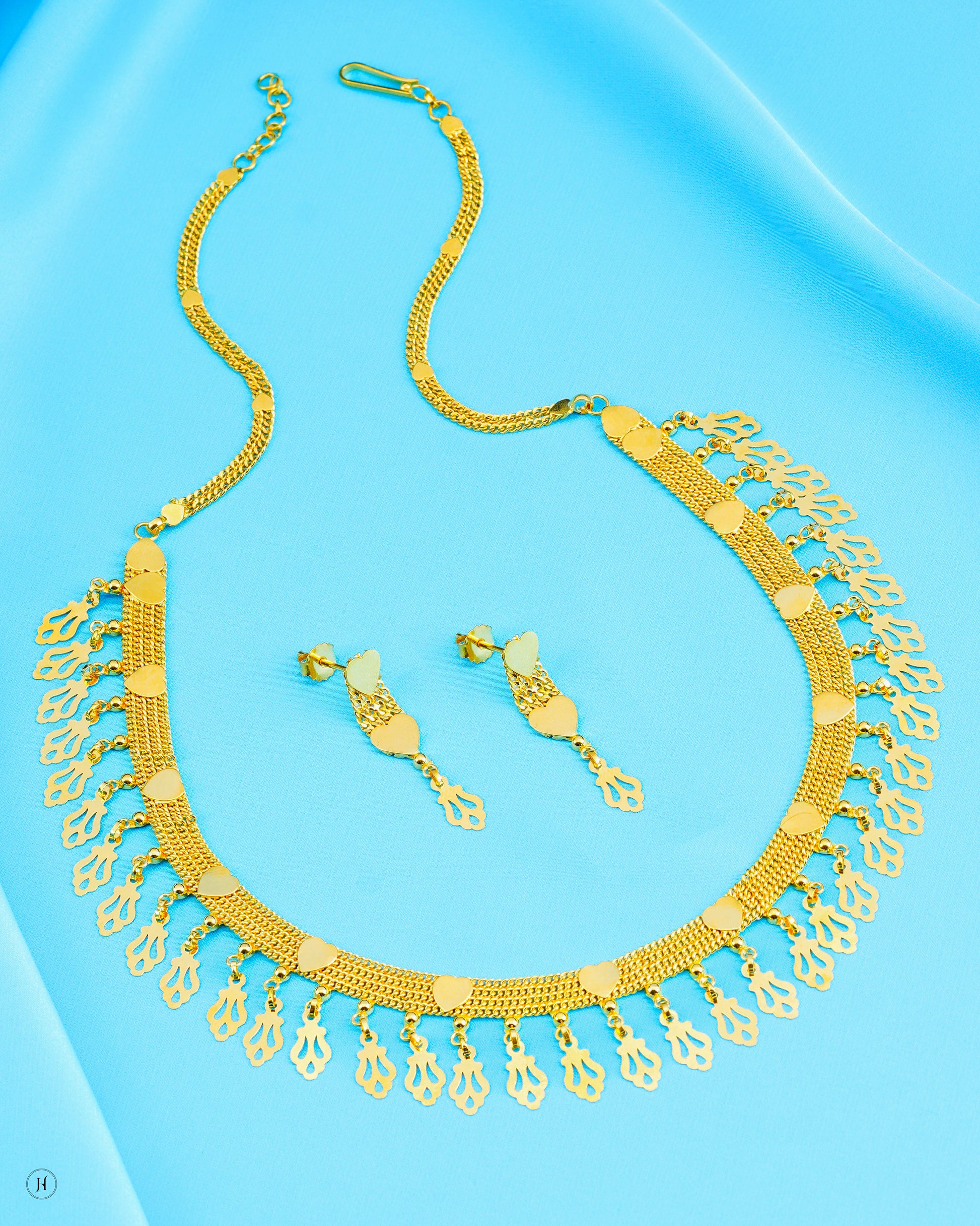 21Karat Yellow Gold Bahraini Drop Motif Necklace Set