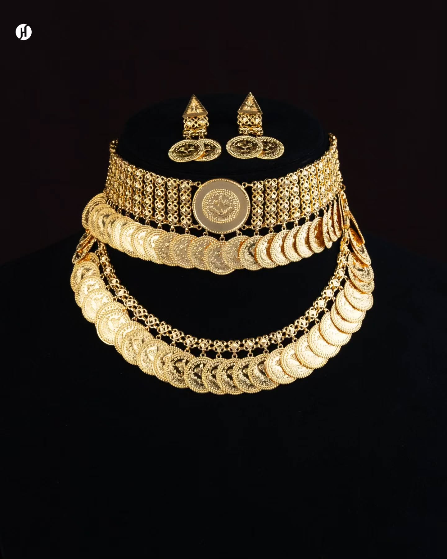 21Karat Yellow Gold Bahraini Layer Lira Layer Coin Choker Necklace Set