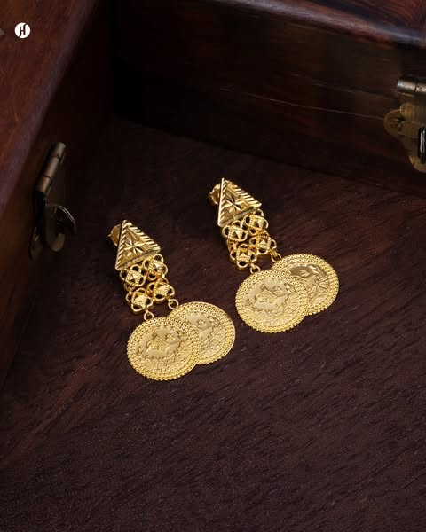 This 21Karat yellow gold choker necklace set features array of lira coin with dual layer. The set also includes matching drop earrings.