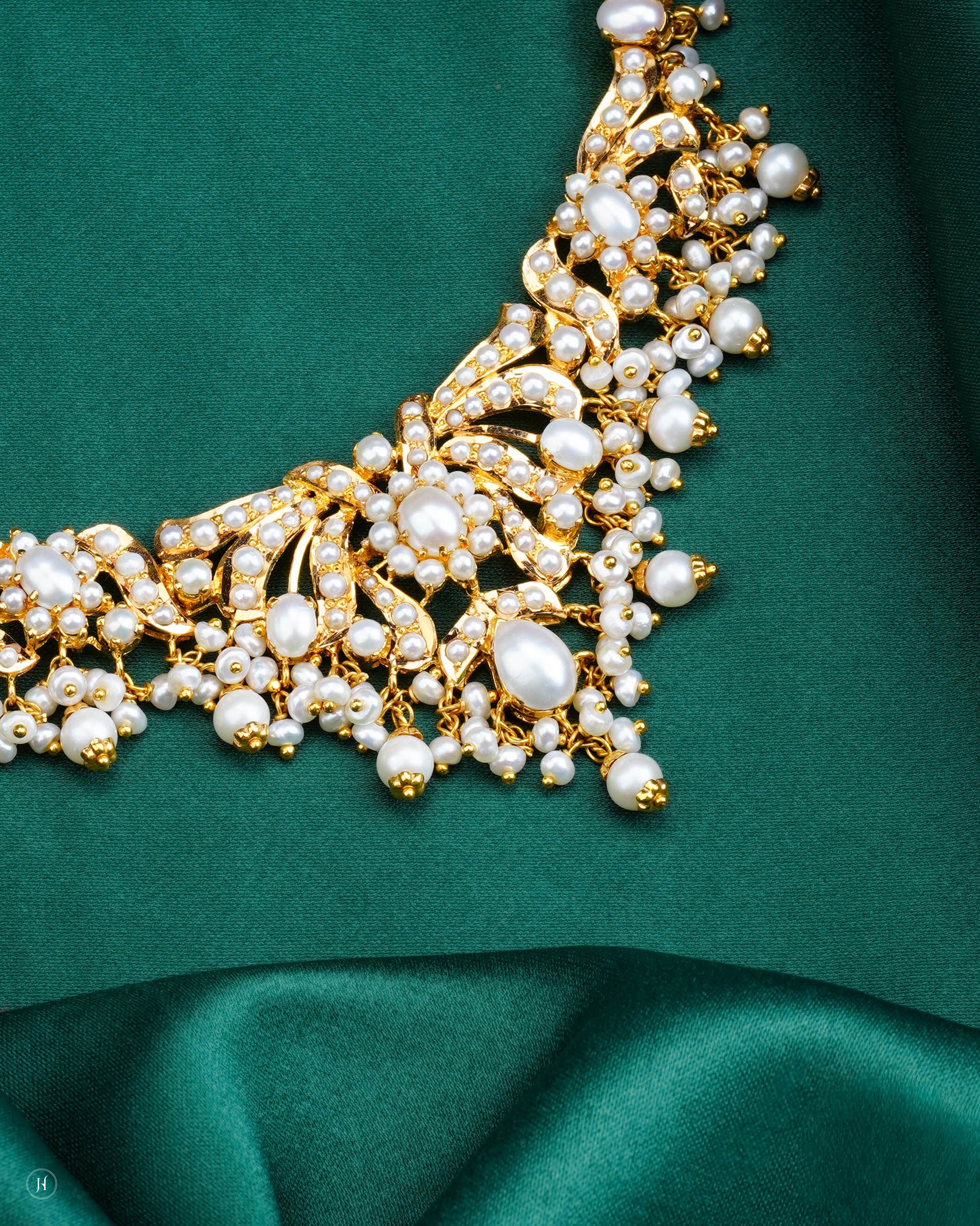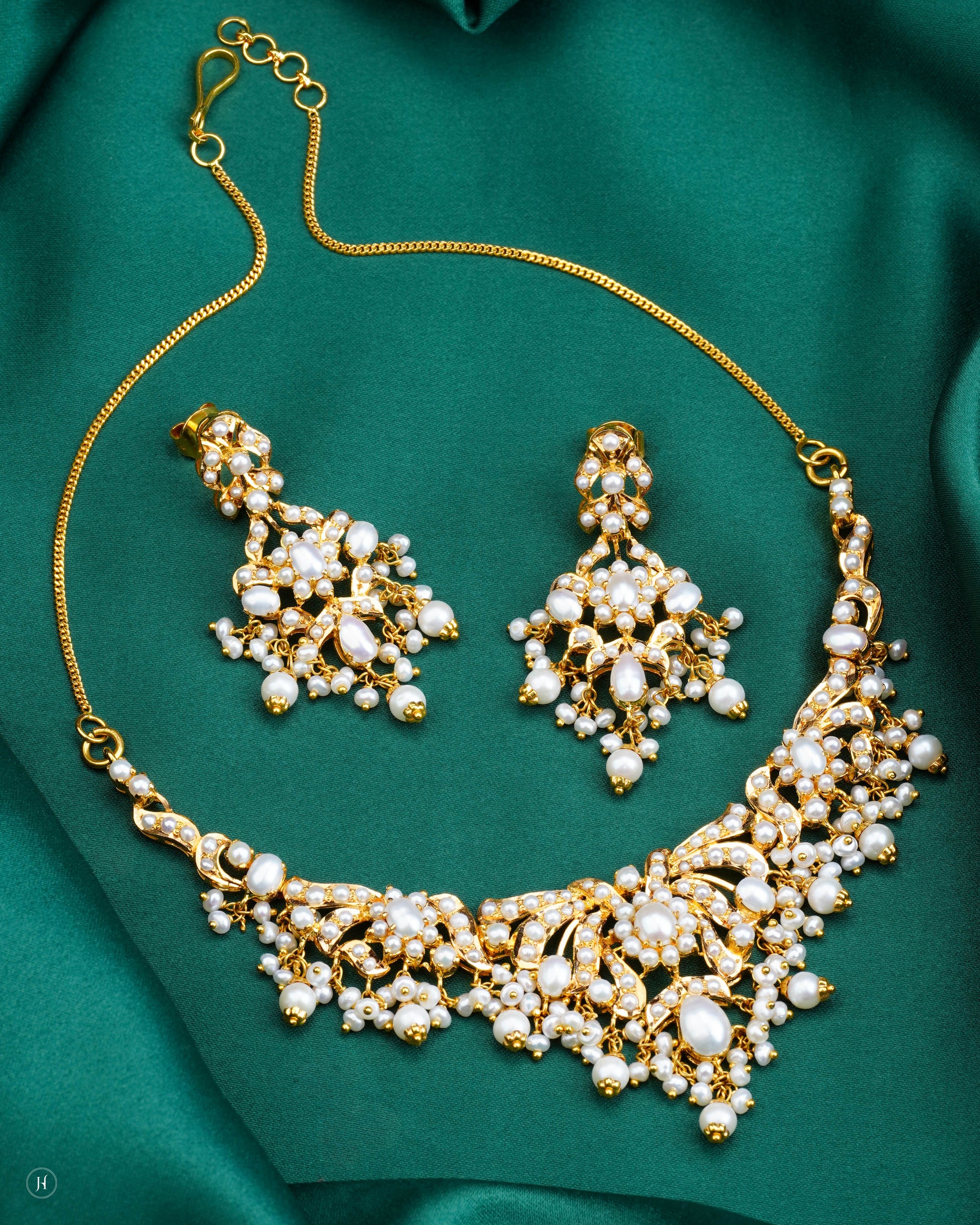 21Karat Yellow Gold Pakistani Majestic Pearl Bridal Necklace Set