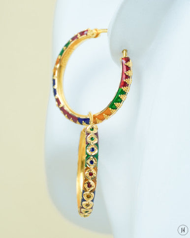 21K Yellow Gold Multicolor Meena Hoop Earrings