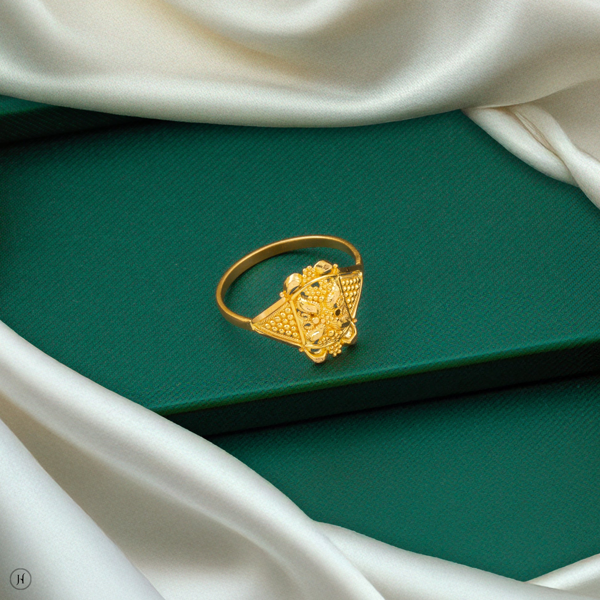 22K Yellow Gold Box Flower Design Ring
